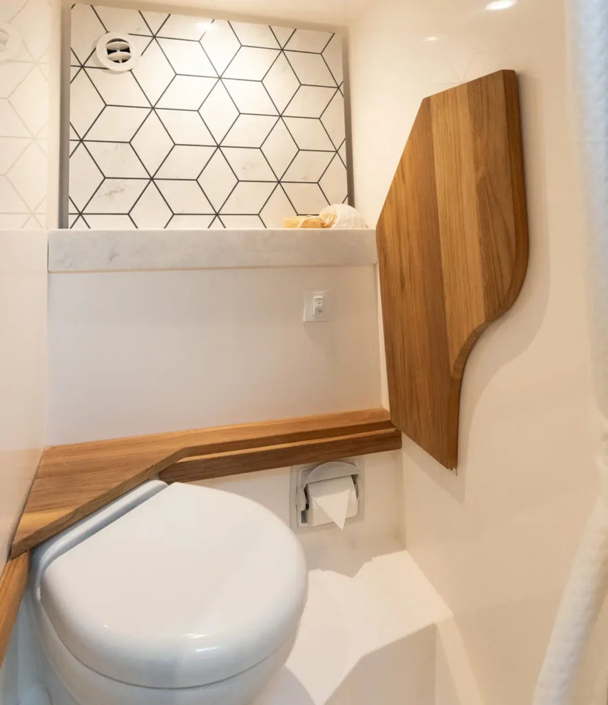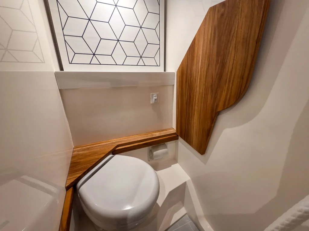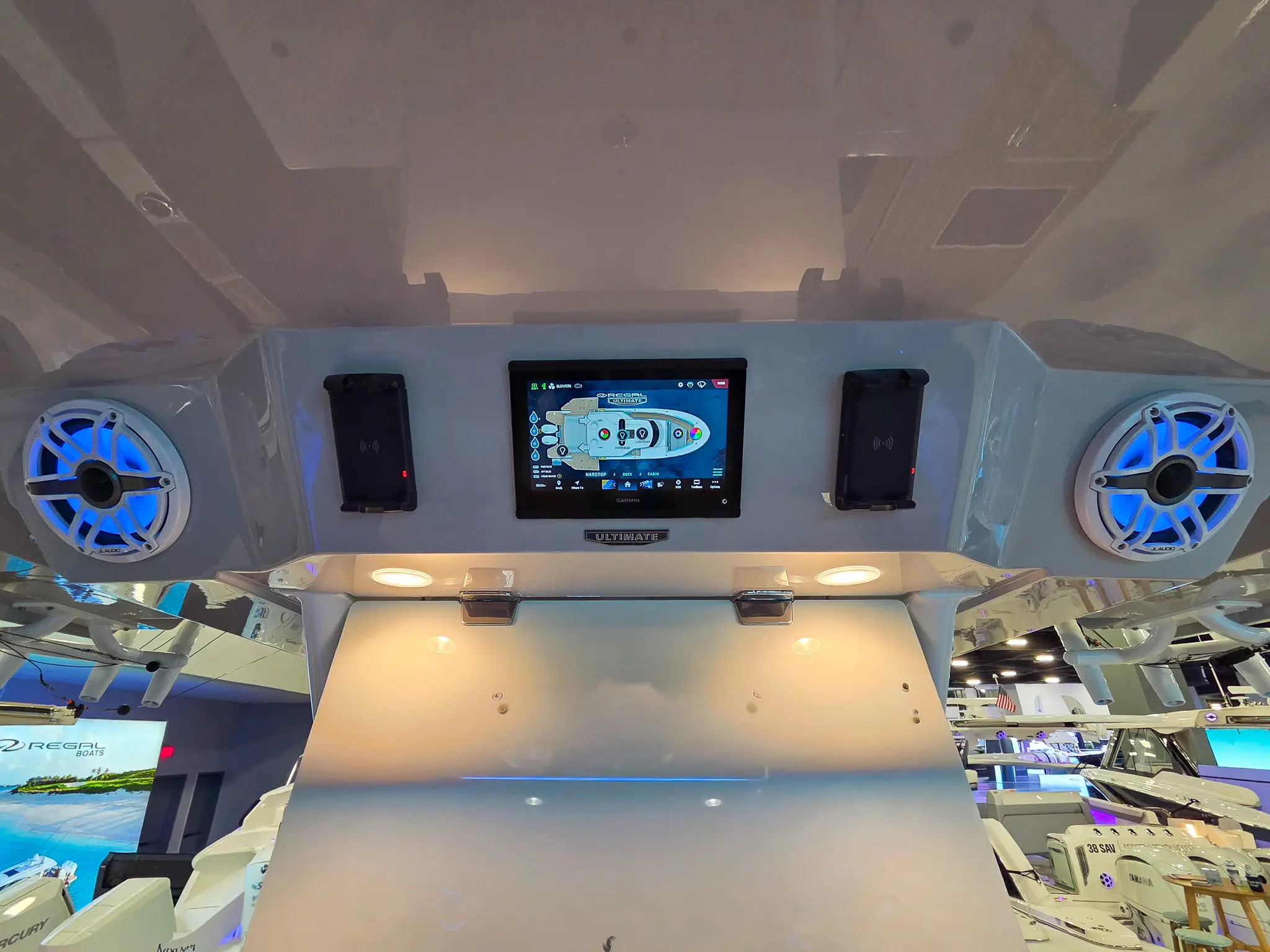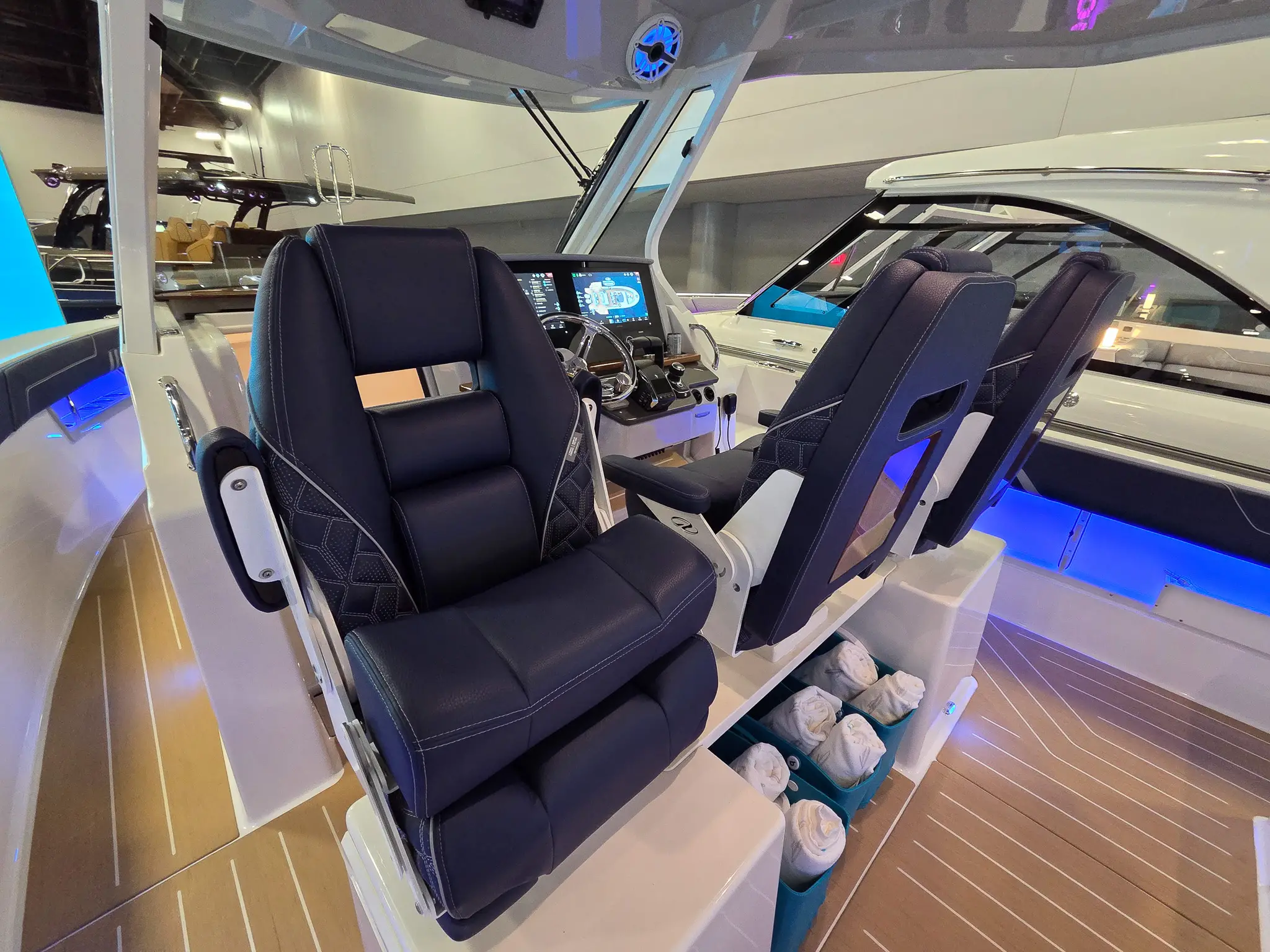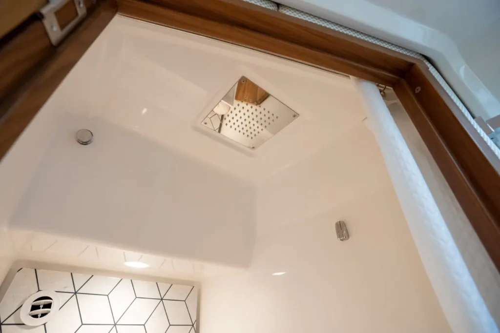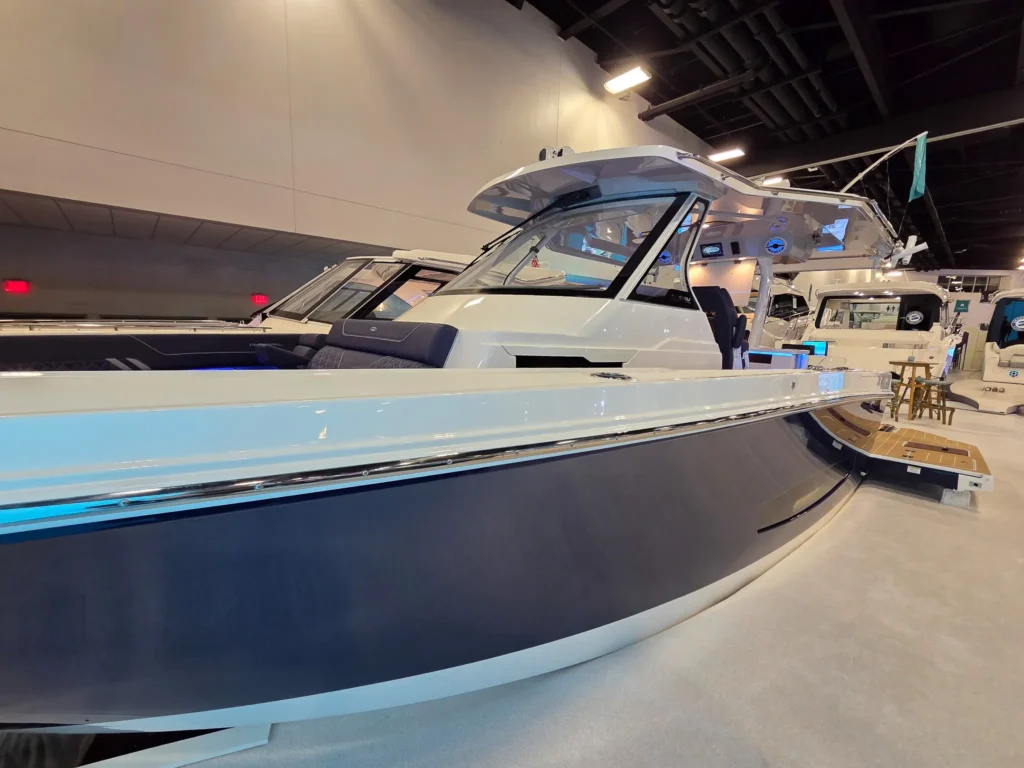 Dual Terrace Doors lower and turn the cockpit into the social center of the boat, creating more space and easy in-and-out access for swim days, sandbar hangs, and water toys.