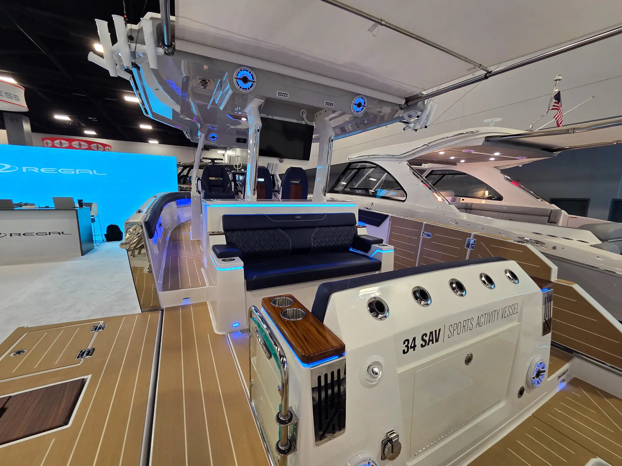 The 34 SAV embodies its name, the Regal Sports Activity Vessel™. A seamless combination of sporting, fishing, entertaining, day boating, and overnighting, it’s the ultimate mix and an excellent choice for nearly anything you want to do on the water. This unmatched versatility and sleek design result in a do-it-all memory-making machine.