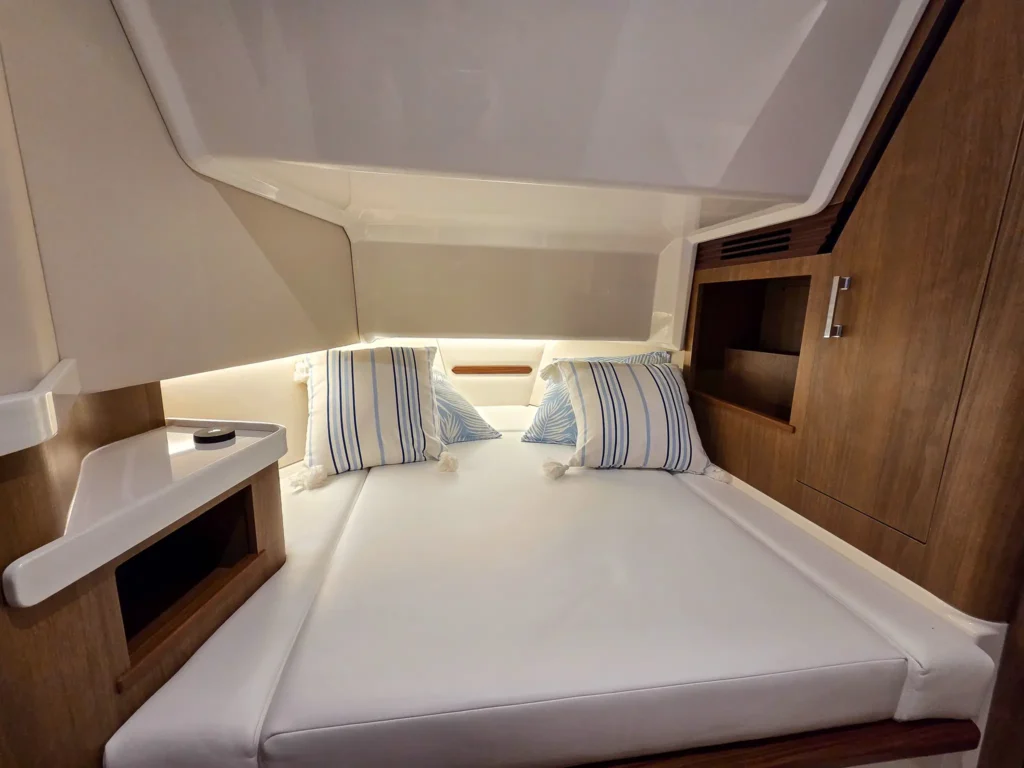 Rod holders are placed where you actually use them, paired with outriggers, a convertible transom, a large fish box, and an integrated livewell. Add advanced onboard tech, and the 34 SAV is ready for serious fishing, without sacrificing comfort.