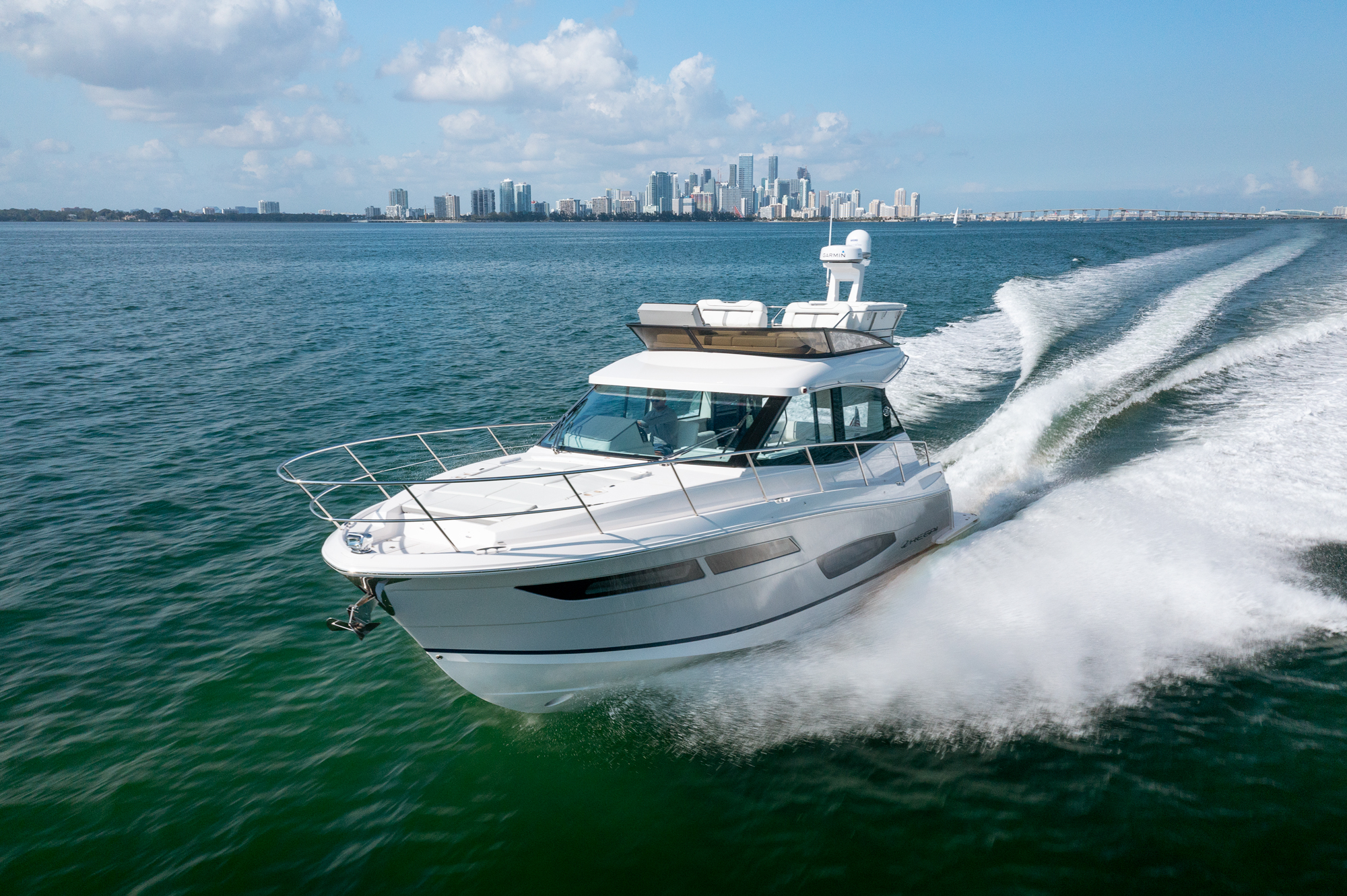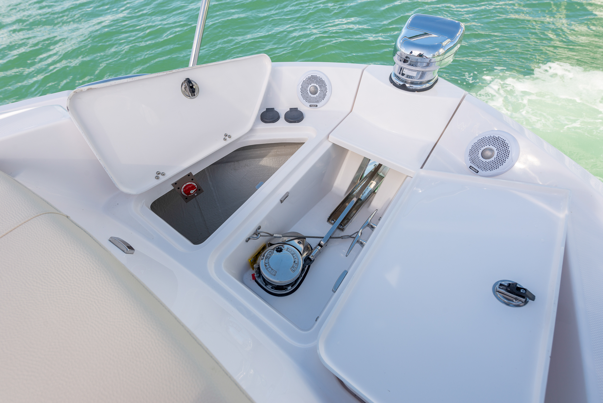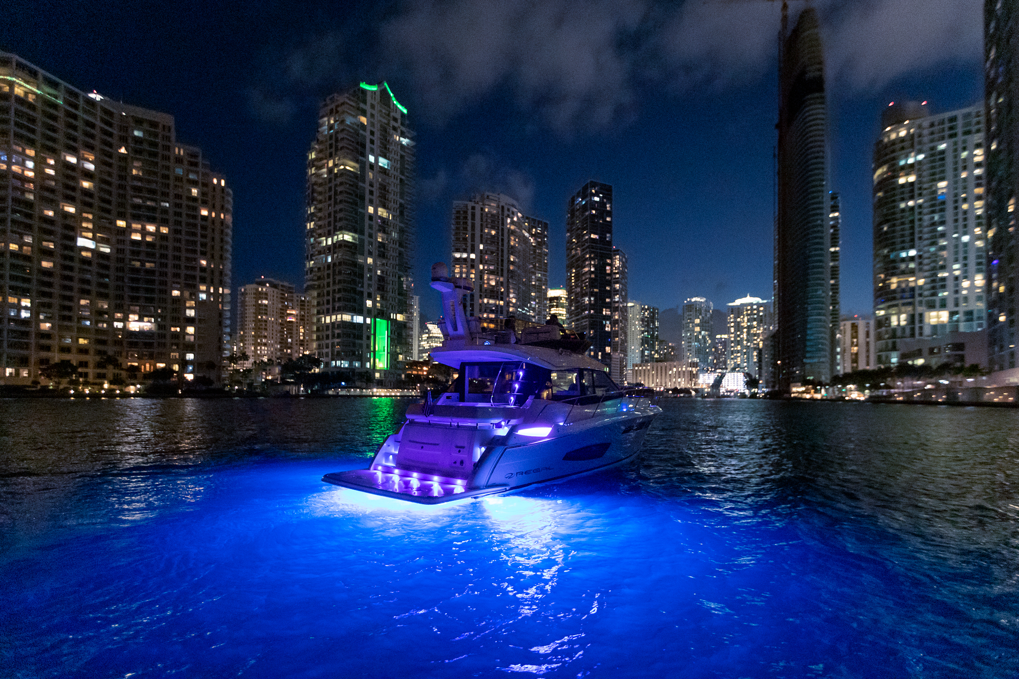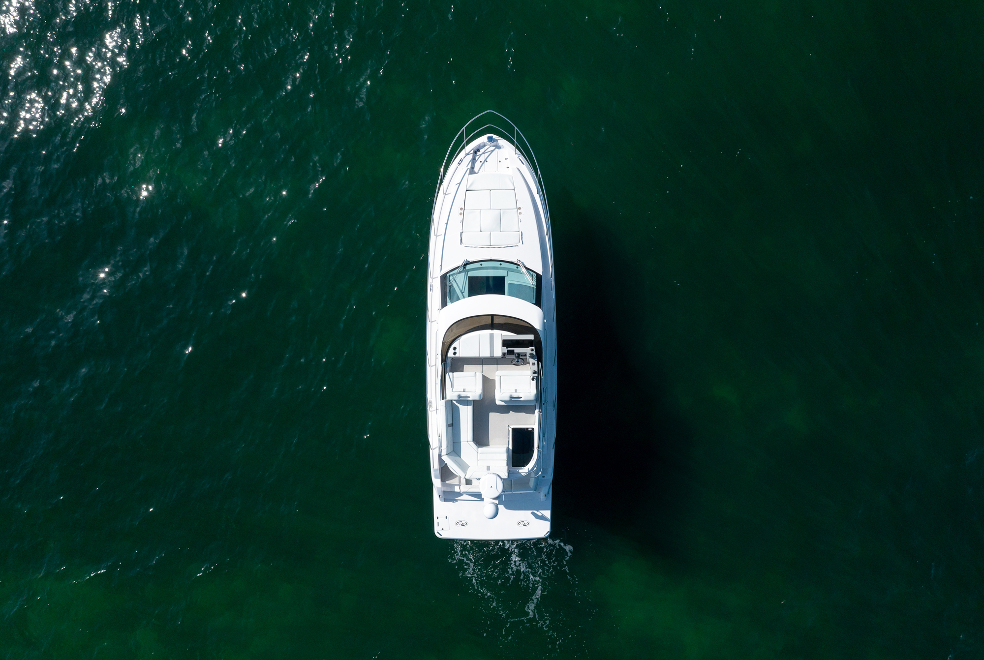 This watercraft, however, is quite a sight in itself. Possessing the curvaceous and streamlined looks that have made Regal Boats so sought-after in recent decades, the 38 Fly combines the latest in modern naval architecture and aerodynamic lines with a harmonious nod to the very best of Regal’s brand heritage. Pick a custom gel-coating to give your vessel a livery in sparkling Tahiti Beach White, or add a shock of color in the form of a Flame Red bootstripe, bound to catch the eye as you cruise.