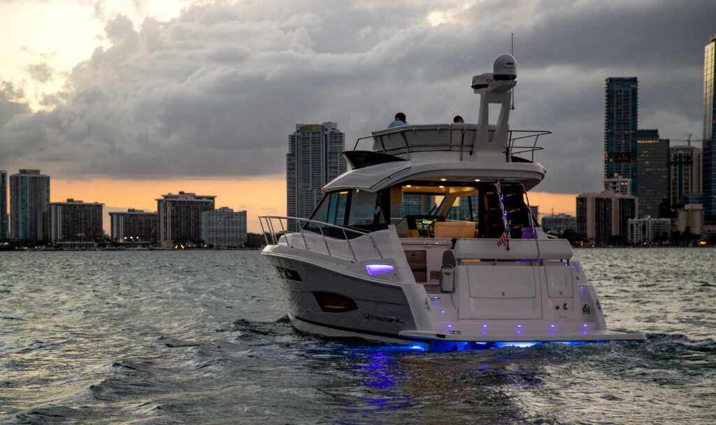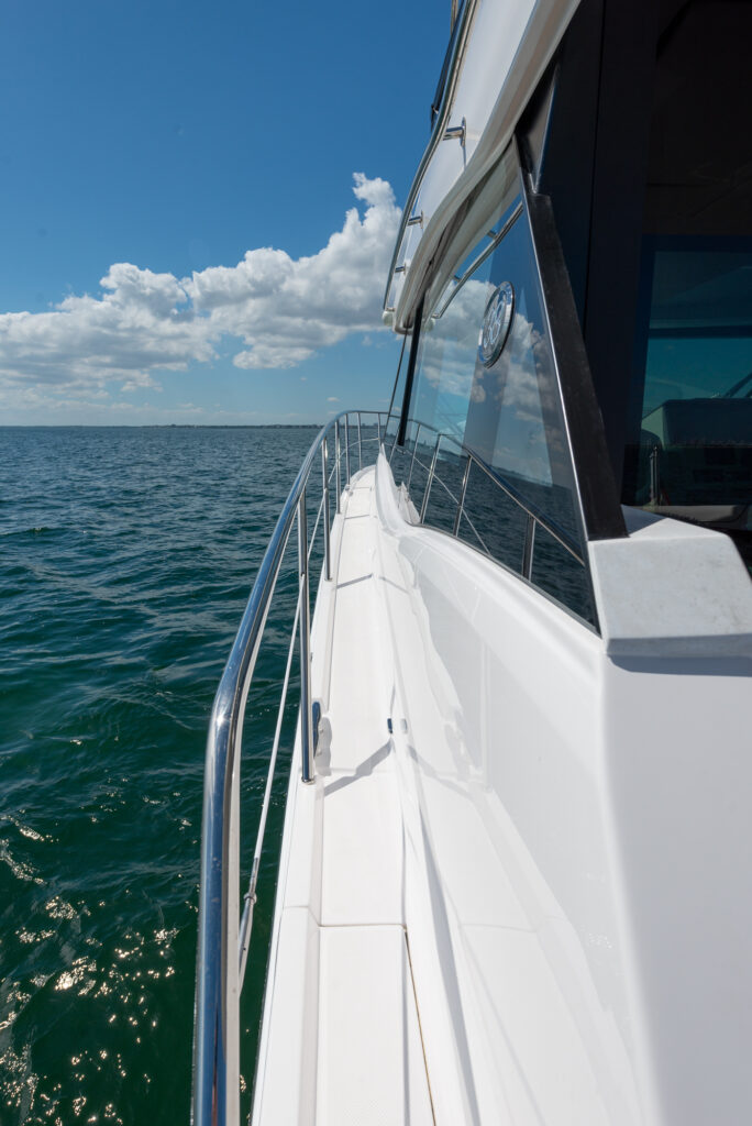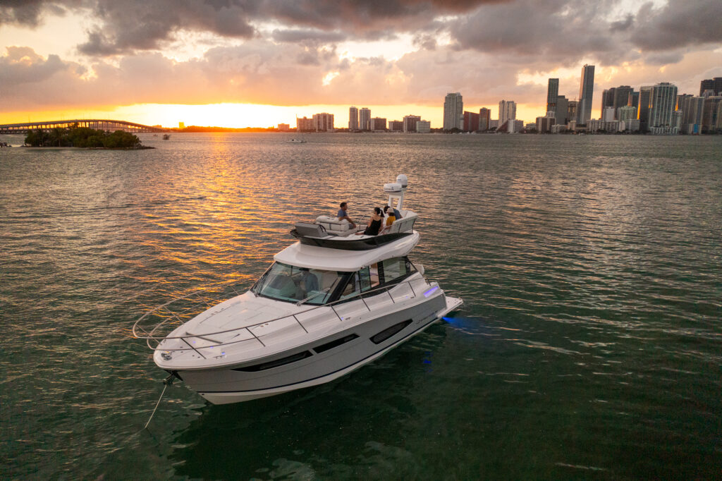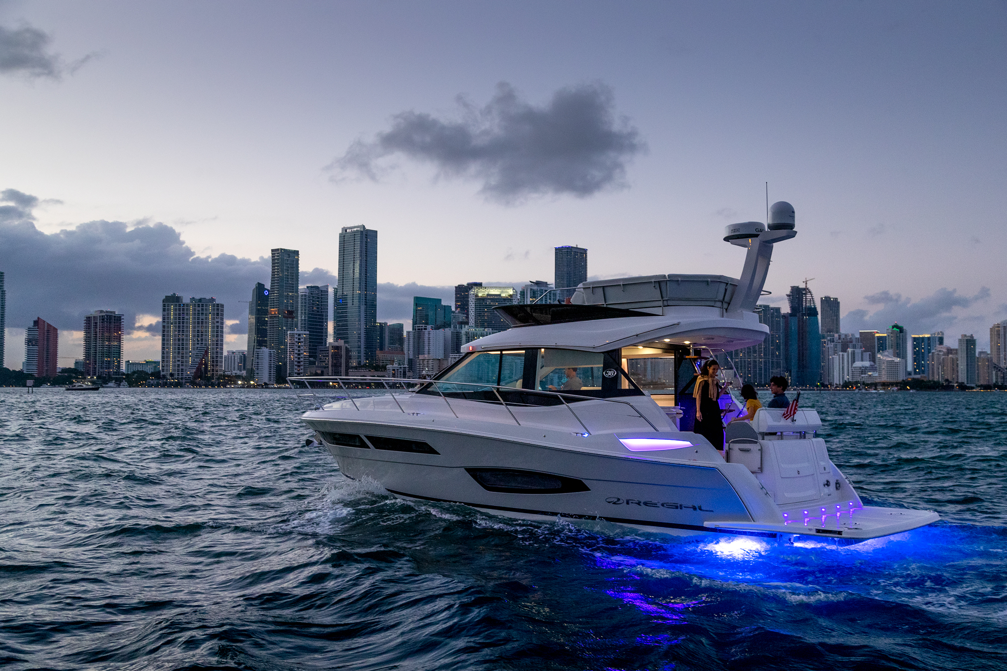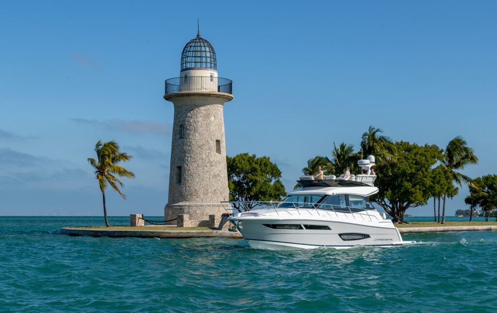 Waterfront property the world over commands a premium, but there is no beach-side villa on the planet that can quite match the 360-degrees of unadulterated, oceanic views you will enjoy on a yacht. Sail a few dozen miles off the coast for blissful, secluded and serene vistas with not a soul in sight, or glide along the pristine coastlines of California, the Carolinas or Cape Cod for a unique and ever-changing vantage point that none on land can challenge. The Regal 38 Fly is a vessel that has been designed with such views in mind, boasting panoramic sights from a raised flybridge, unobstructed prospects from the main-deck and even water-level seascapes from below-deck rooms that will take your breath away.