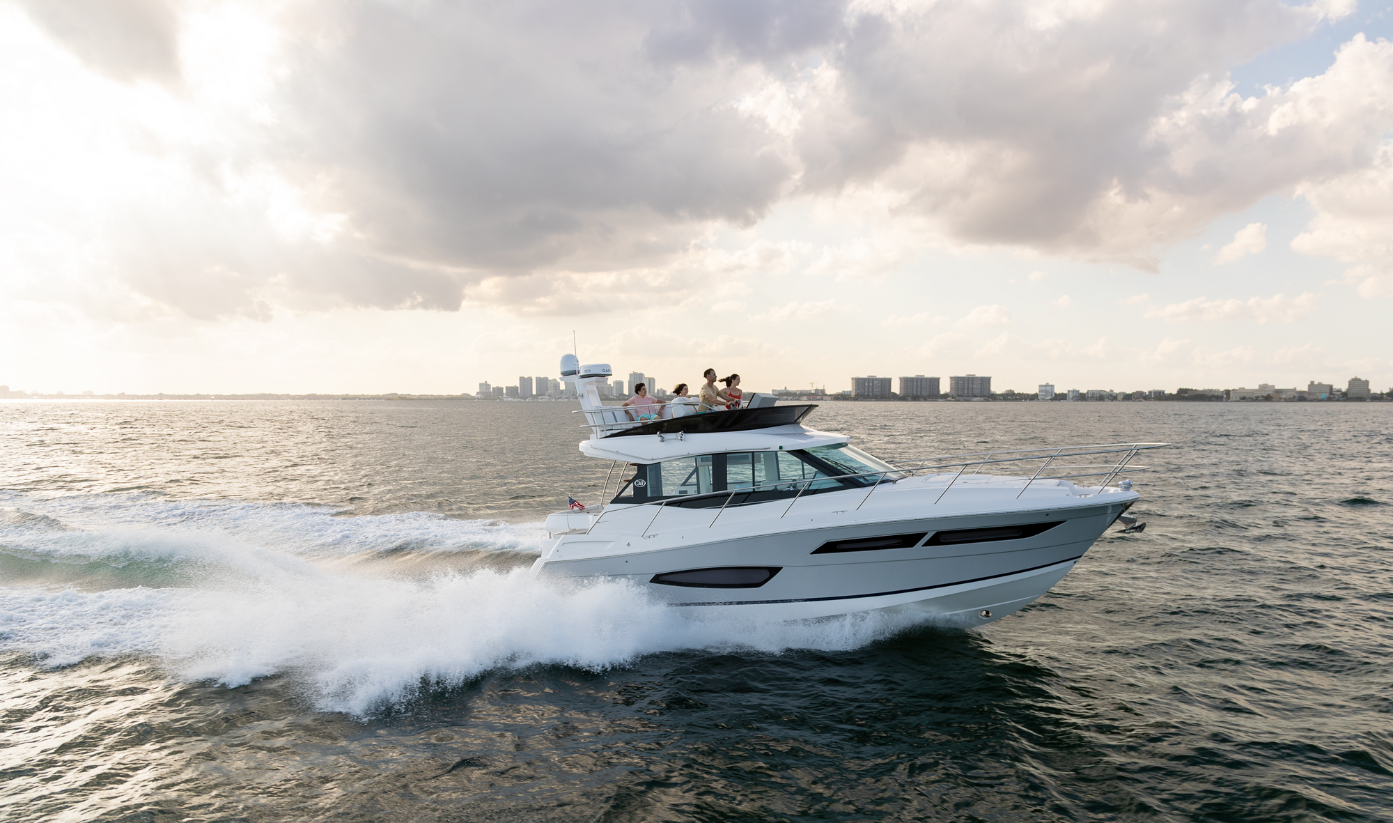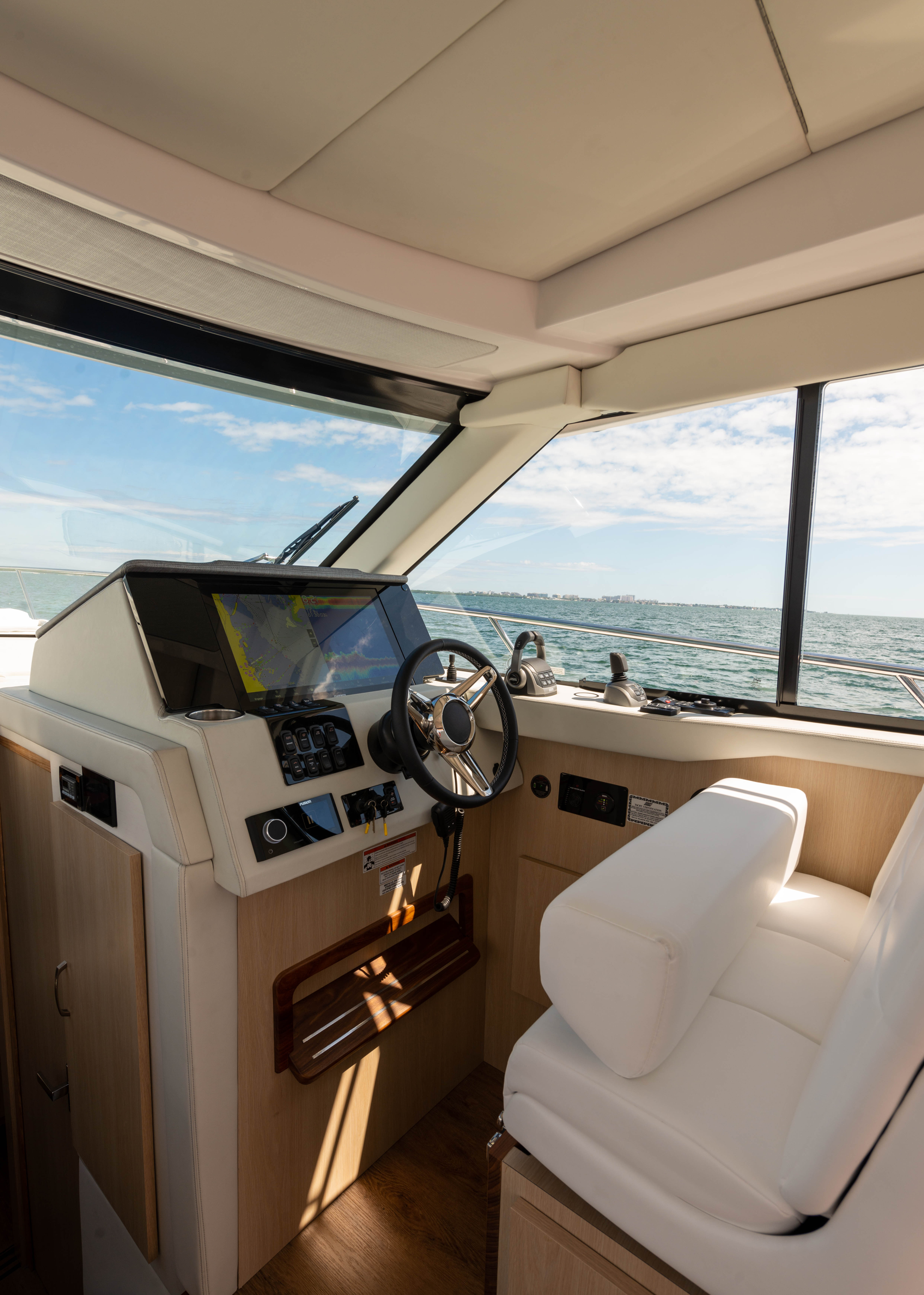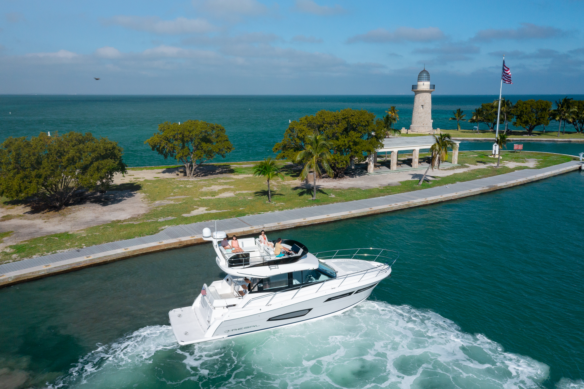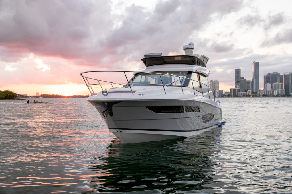 Waterfront property the world over commands a premium, but there is no beach-side villa on the planet that can quite match the 360-degrees of unadulterated, oceanic views you will enjoy on a yacht. Sail a few dozen miles off the coast for blissful, secluded and serene vistas with not a soul in sight, or glide along the pristine coastlines of California, the Carolinas or Cape Cod for a unique and ever-changing vantage point that none on land can challenge. The Regal 38 Fly is a vessel that has been designed with such views in mind, boasting panoramic sights from a raised flybridge, unobstructed prospects from the main-deck and even water-level seascapes from below-deck rooms that will take your breath away.