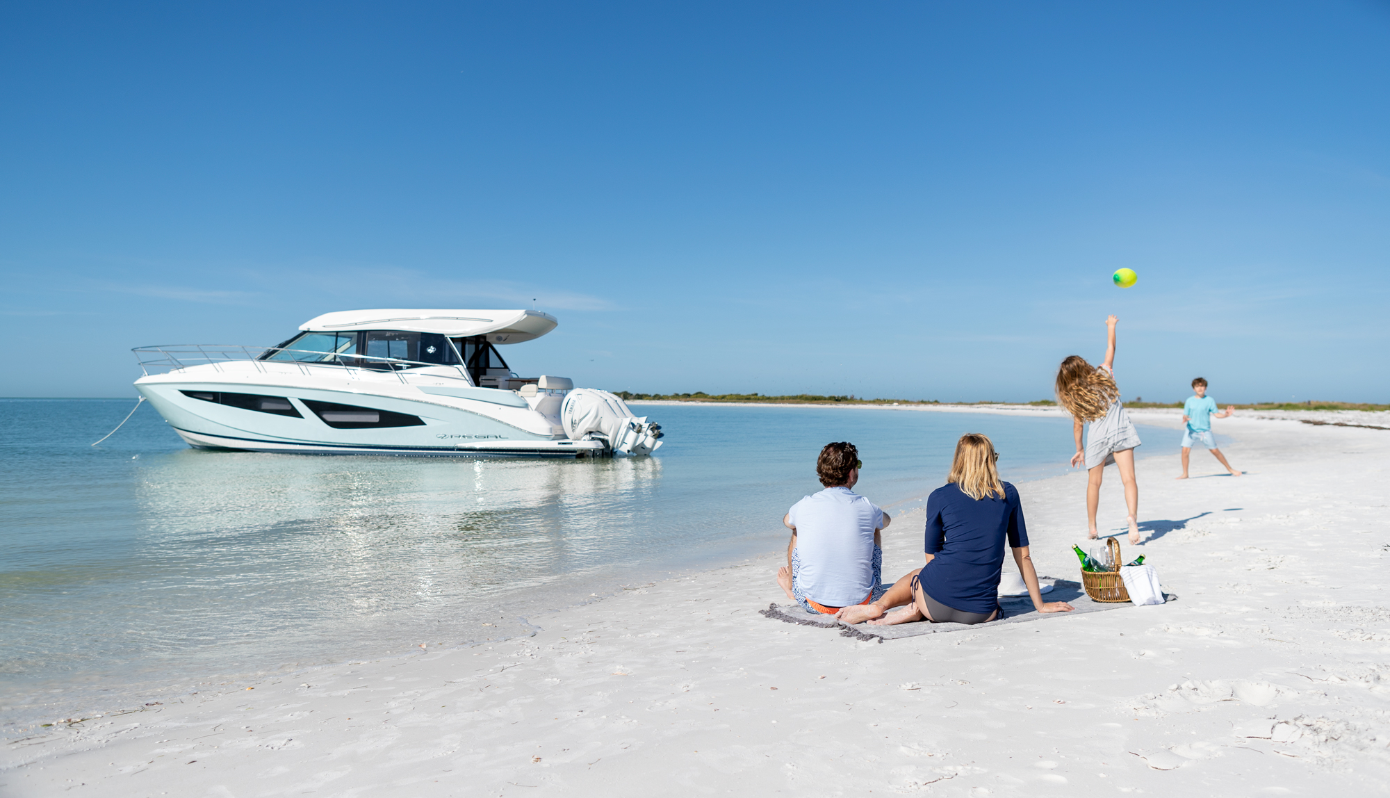 If a yacht could talk it would tell of romantic journeys across the seas. From the palm-studded coasts of tropical Tahiti and the natural half-moon harbor at Catalina to the sugarcane beaches of Florida’s Gulf Coast or simply the nostalgic sight of a driftwood jetty with plenty of homespun, old-time charm: your embarkation point for Nantucket. Yet sometimes a boat does just that: it speaks to you. Perhaps this is why the Regal 42 XO, a sleek, modern 44-foot outboard-powered sportboat, has been such an instant success with discerning clients around the globe since it was first launched to the public in 2021. It foretells magical moments spent on the water with the whole family, and articulates the refined, reliable build-quality on which Regal have staked their reputation for over half a century.