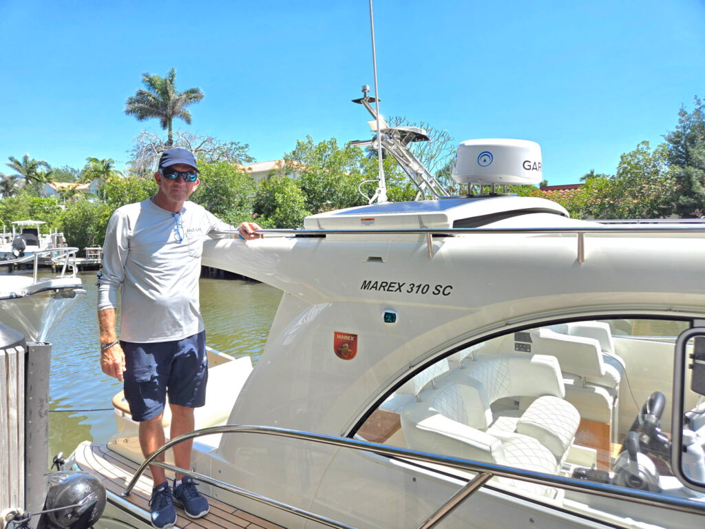 So there I am, sitting on the back of one of the very first Marex 310 Sun Cruisers in North America, at the Palm Beach Boat Show with one of the owners of Sandy Hook Yachts and broker extraordinaire Ken Main.