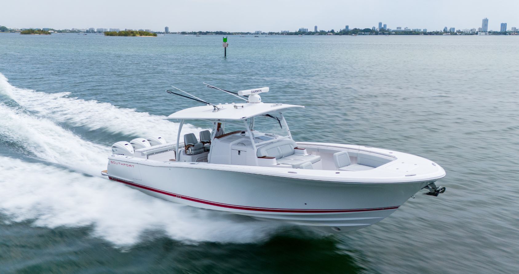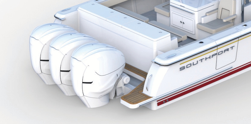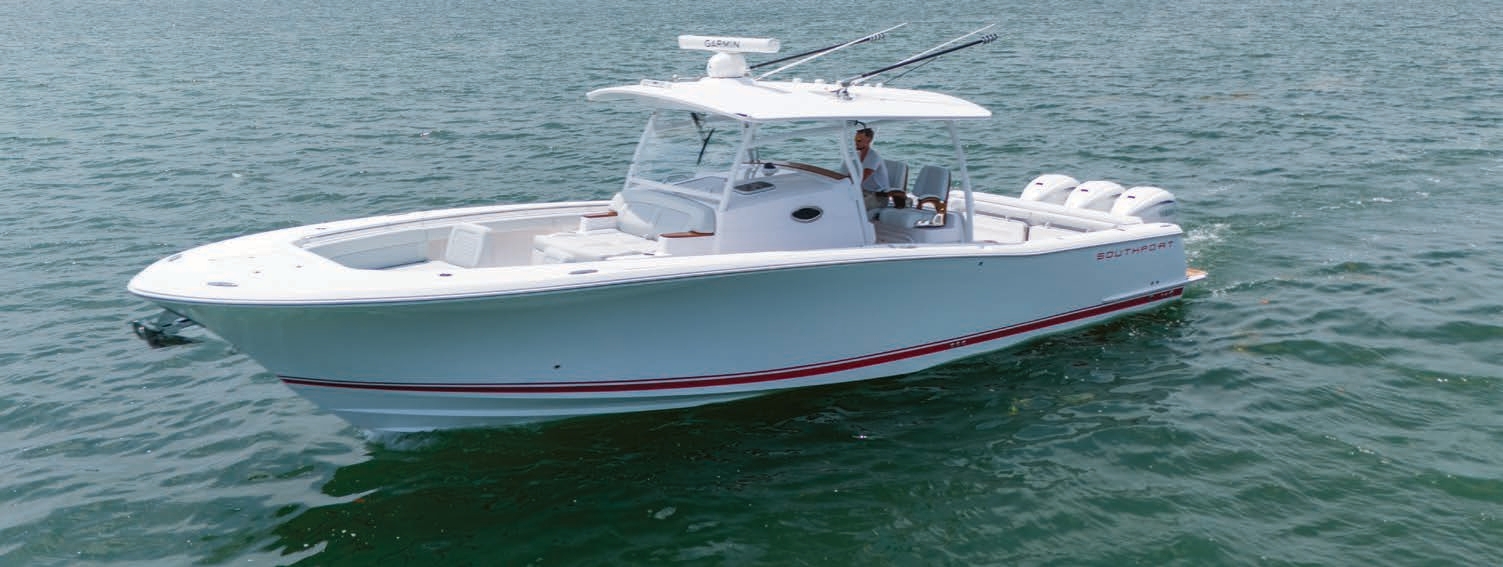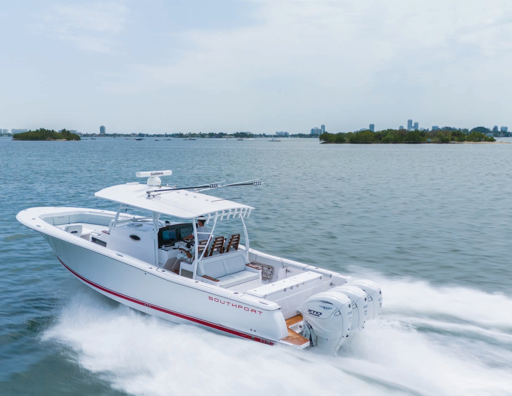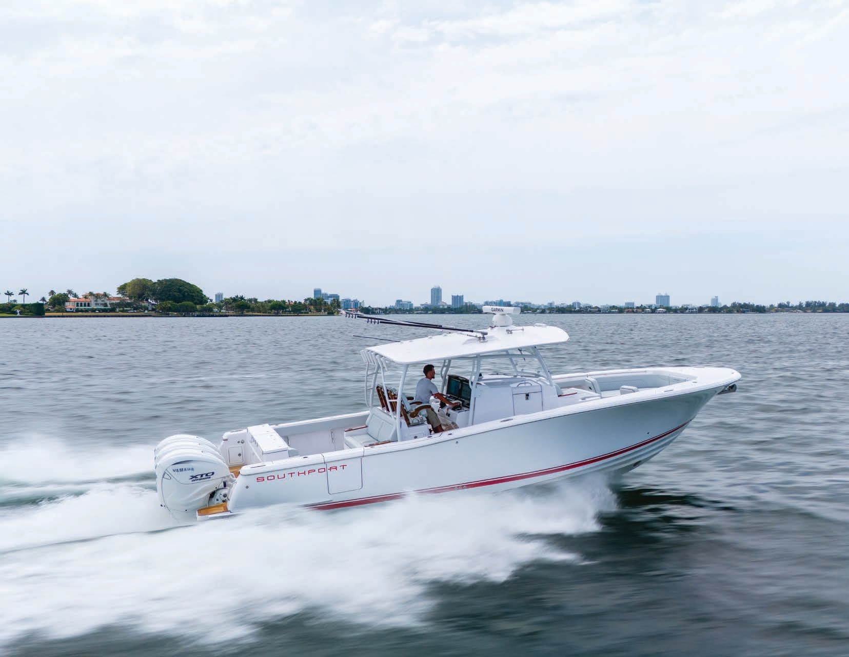 The 38FE still delivers the fishing performance Southport is known for. It’s 13-foot beam makes for the familiar Southport ride, and with triple Yamaha 450’s reaches speeds up to 60 miles per hour.