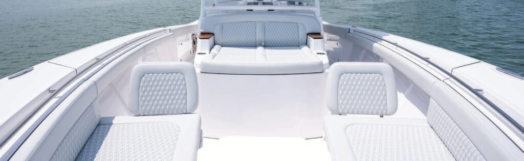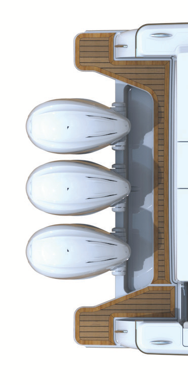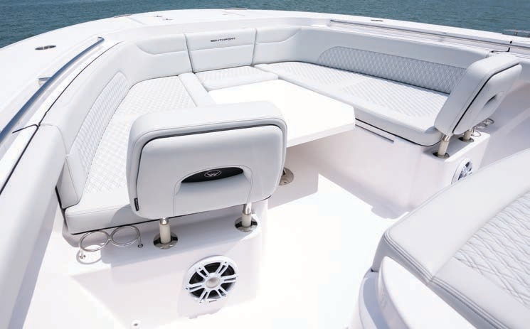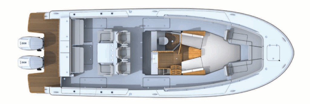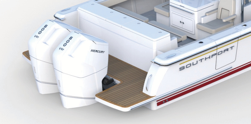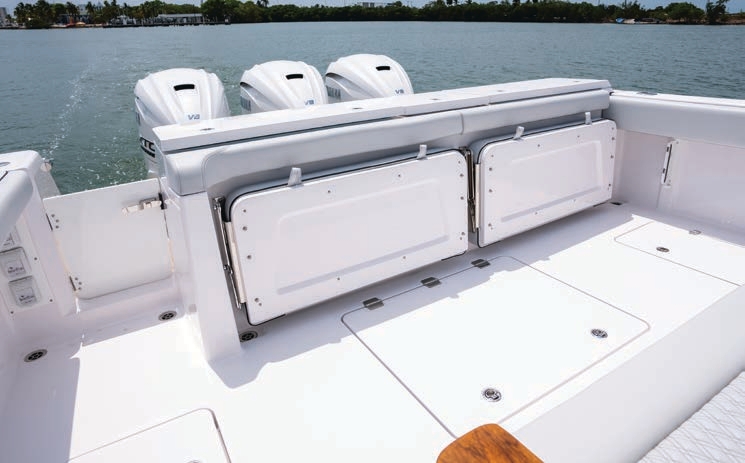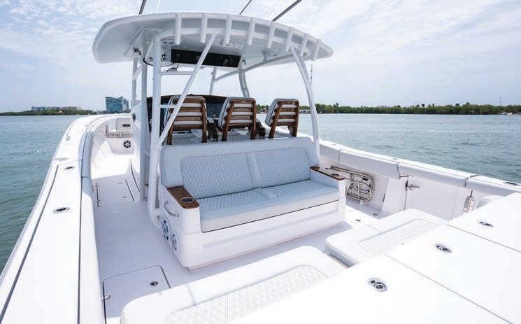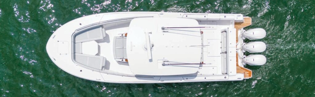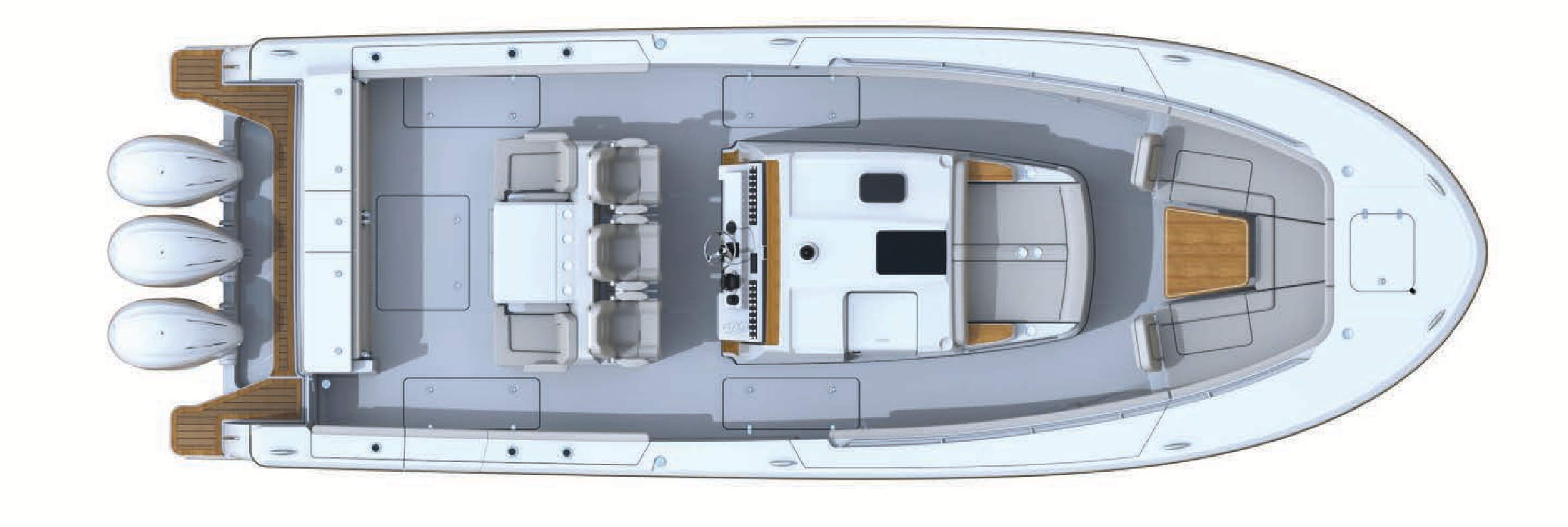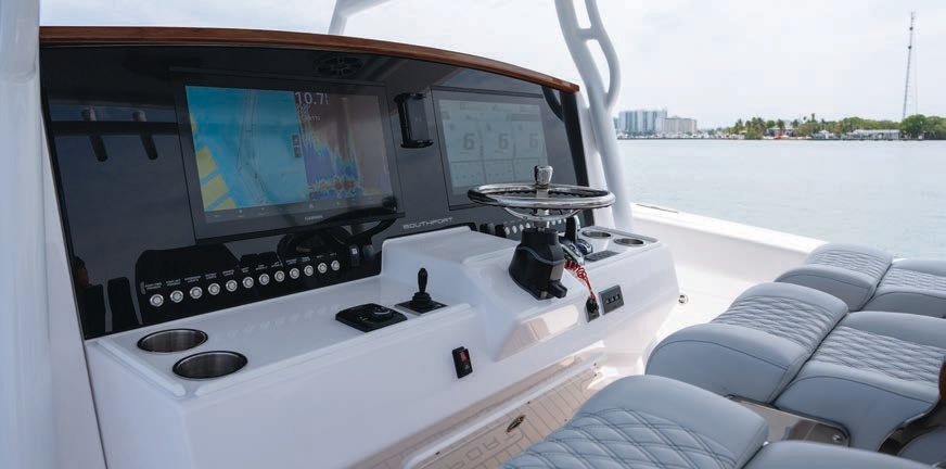 The 38FE still delivers the fishing performance Southport is known for. It’s 13-foot beam makes for the familiar Southport ride, and with triple Yamaha 450’s reaches speeds up to 60 miles per hour.